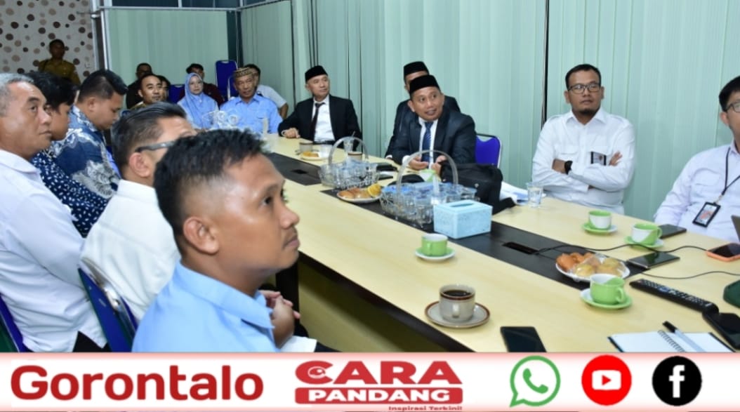 Bupati Pohuwato, Saipul A. Mbuinga, menghadiri paparan dari Kepala BPBPK Kementerian PUPR, Dwi Atma Singgih Raharja Sabaris, ST, beserta rombongan di Ruang Tarsius Bappeda Pohuwato