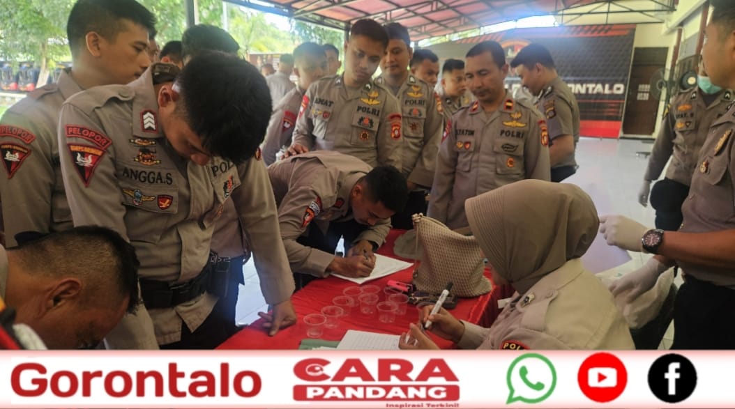 GORONTALO, CARAPANDANG - Menindaklanjuti perintah Kapolri terkait pelaksanaan tes urine secara serentak bagi seluruh anggota Polri di Indonesia, personel Satuan Brimob Polda Gorontalo melaksanakan kegiatan tes urine pada Rabu, 25 Februari 2026. Kegiatan tersebut dilaksanakan di Mako Satbrimob Polda Gorontalo sebagai bentuk komitmen dalam menjaga integritas serta memastikan seluruh personel terbebas dari penyalahgunaan narkoba.
