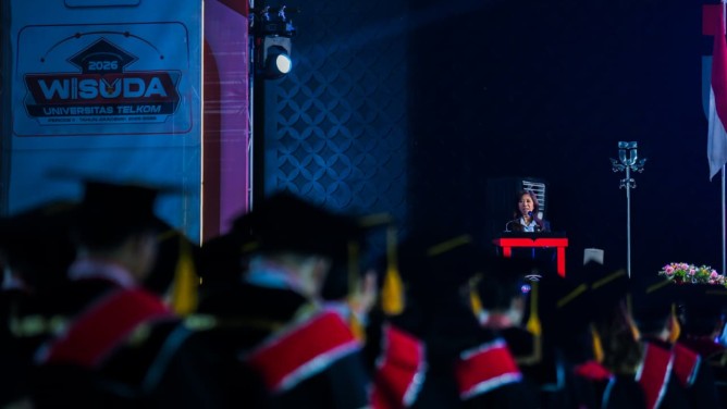 “Di era post-truth, tantangan kita bukan lagi pada akses informasi, tetapi pada kualitasnya. Karena itu, para wisudawan harus bisa berperan juga sebagai agen perubahan dan menjadi pandu-pandu literasi digital di daerahnya masing-masing,” ujar Meutya dalam inspiring speech-nya pada acara wisuda Telkom University di Bandung, Jawa Barat, Sabtu (25/04/2026).