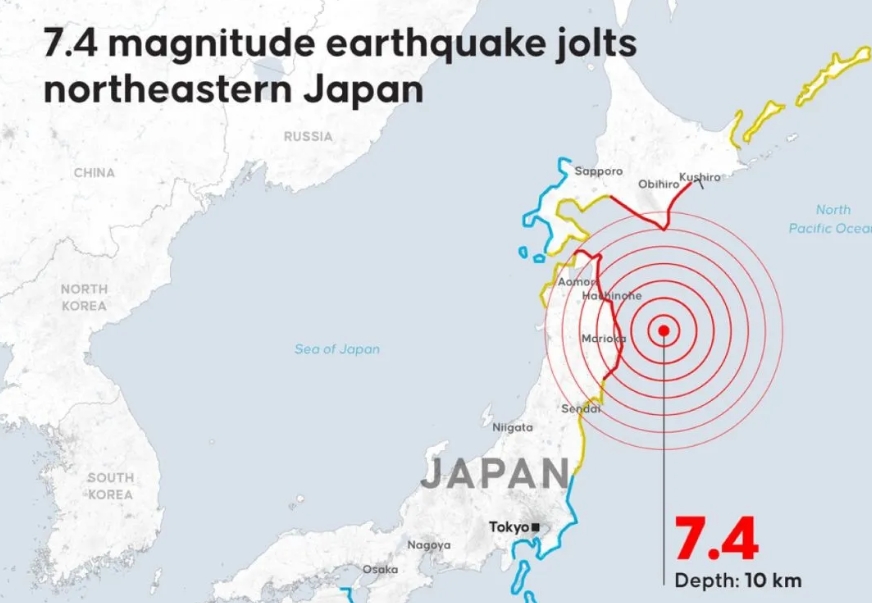 Dalam pengumuman resmi yang disiarkan secara nasional, JMA menyatakan bahwa probabilitas terjadinya gempa berkekuatan magnitudo 8,0 atau lebih di wilayah Palung Jepang dan Palung Chishima meningkat menjadi sekitar 1 persen dalam sepekan ke depan.