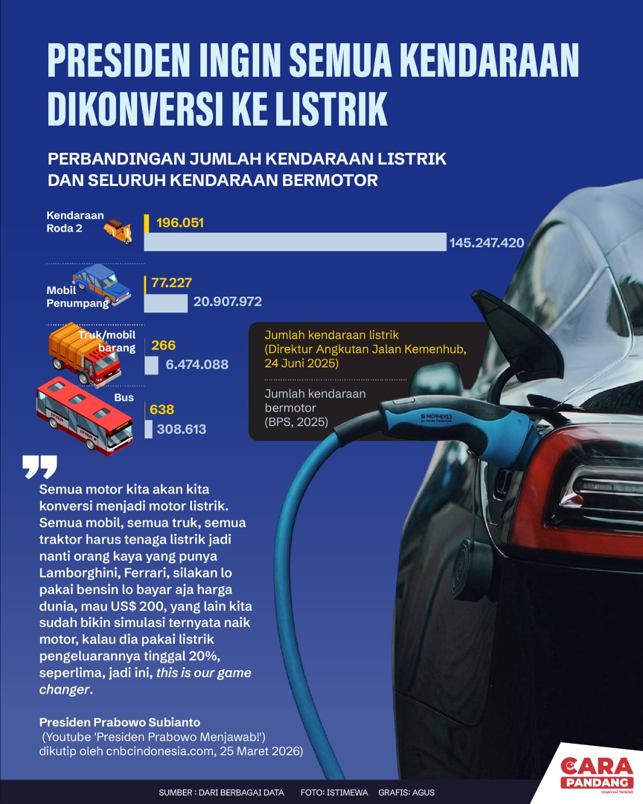 Beranda Infografis Presiden Ingin Semua Kendaraan Dikonversi ke Listrik Infografis Presiden Ingin Semua Kendaraan Dikonversi ke Listrik Penulis Amira Izzati - 30 Maret 2026 11:48 0 Presiden Ingin Semua Kendaraan Dikonversi ke Listrik Tags Berita Sebelumnya Kuba Kecam AS karena "Berbohong" Soal Blokade Bahan Bakar Berita Berikutnya Singapura Perketat Inspeksi Perbatasan untuk Turis yang Kedapatan Membawa Vape LEAVE A REPLY Cancel reply Comment: Please enter your comment! Name:* Please enter your name here Email:* You have entered an incorrect email address! Please enter your email address here Website: Save my name, email, and website in this browser for the next time I comment. Berita Teratas Oknum ASN Kemensos di Boalemo Terima Setoran Tambang Ilegal Bupati Saipul Serahkan LKPJ Pohuwato 2025 ke DPRD Puluhan Tahun Rusak, Jembatan Penghubung Dusun Rimbun dan Dusun Hulota Akhirnya Dapat Perhatian Melalui Program Pembangunan Kodam XIII/Merdeka Gerak Cepat Satreskrim, Kasus Curanmor di Pohuwato Berhasil Diungkap Yusuf Mbuinga Kritik Keras Kinerja Aparat Penegak Hukum di Wilayah Polres Pohuwato Berita Terkait Berita Terkait