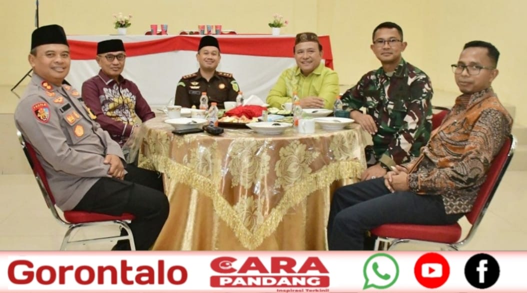 POHUWATO, CARAPANDANG – Usai pelaksanaan Apel Gelar Pasukan Operasi Ketupat Otanaha Tahun 2026 dalam rangka pengamanan Idulfitri 1447 Hijriah di halaman Kantor Bupati Pohuwato, kegiatan dilanjutkan dengan buka puasa bersama di Ruang Rapat Gunung Pani, Kantor Bupati Pohuwato, Kamis (12/03/2026).