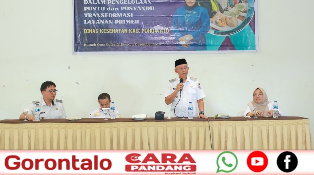POHUWATO, CARAPANDANG - Dinas Kesehatan Kabupaten Pohuwato melaksanakan Pertemuan Koordinasi Tim Pembina Posyandu terkait pengelolaan Pustu dan Posyandu dalam rangka transformasi layanan primer yang dibuka Wakil Bupati Pohuwato, Iwan S. Adam.