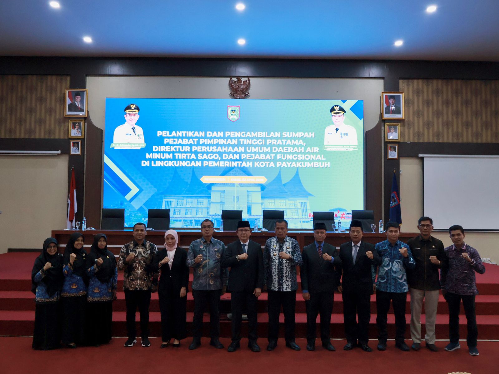 PAYAKUMBUH, CARAPANDANG - Wali Kota Payakumbuh, Zulmaeta, resmi melantik dan mengambil sumpah Pejabat Pimpinan Tinggi (JPT) Pratama, Direktur Perusahaan Umum Daerah (Perumda) Air Minum Tirta Sago, serta sejumlah pejabat fungsional di lingkungan Pemerintah Kota Payakumbuh, Kamis (02/04/2026).