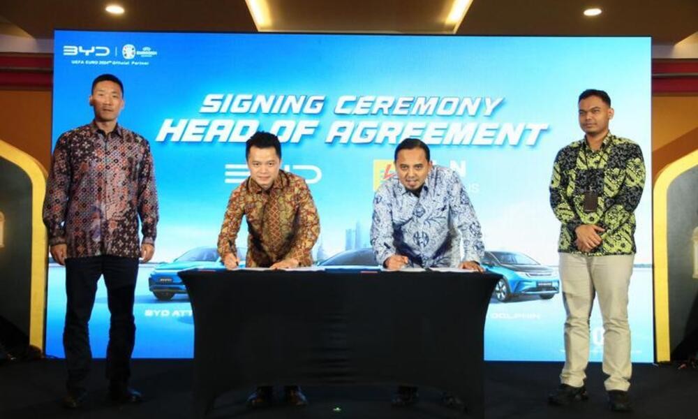 Kerja sama tersebut ditandai dengan penandatanganan Head of Agreement yang dilakukan oleh Presiden Direktur PT BYD Motor Indonesia, Eagle Zhou, bersama Direktur Utama PLN Icon Plus, Ari Rahmat Indra Cahyadi, di Mall Kota Kasablanka pada Jumat (15/3). PLN Icon Plus merupakan anak usaha PT PLN yang menangani lini bisnis di luar kelistrikan.