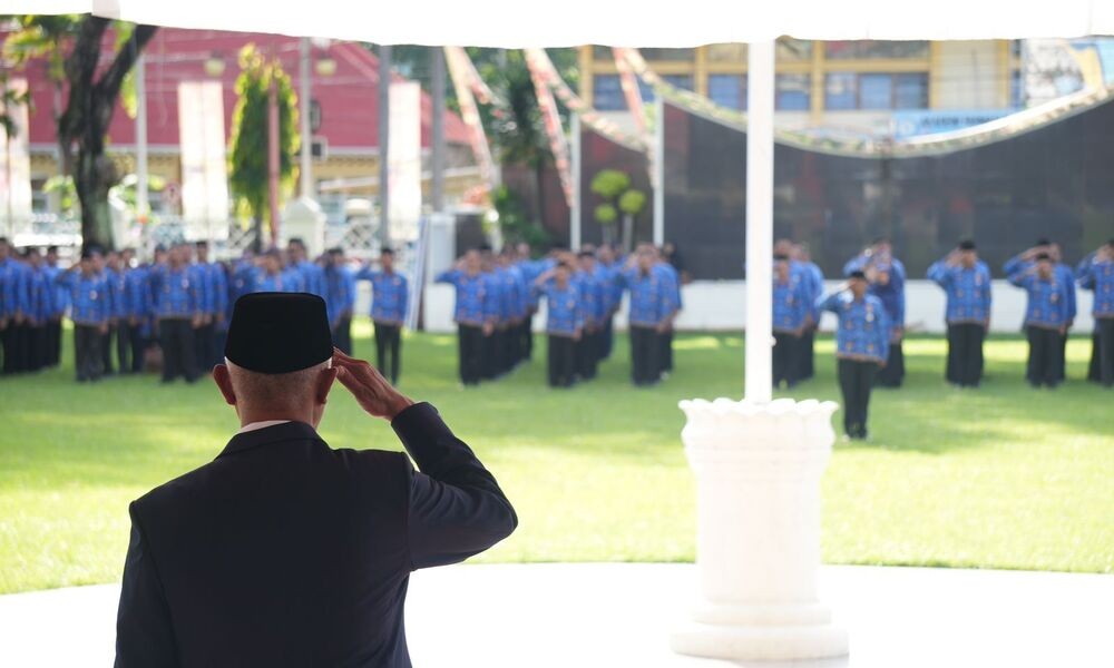 Gubernur Sumbar, Buya Mahyeldi  selaku Inspektur Upacara Peringatan Hari Otonomi Daerah ke-27 di Lapangan Kantor Gubernur Sumbar di Padang (29/4/2023).