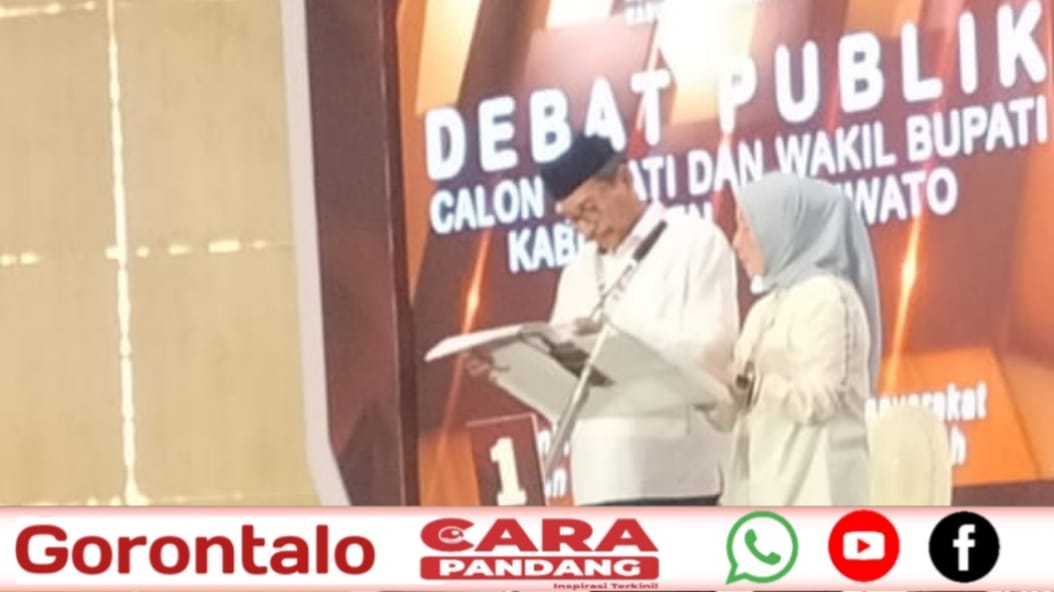 POHUWATO, CARAPANDANG - Debat pasangan calon Bupati dan Wakil Bupati Pohuwato putaran pertama yang digelar, Minggu (27/10/2024), menarik perhatian publik, salah satunya soal Pasangan Calon nomor urut 1, yang kerap menggunakan "contekan" saat adu ide dan gagasan di atas panggung debat Publik.