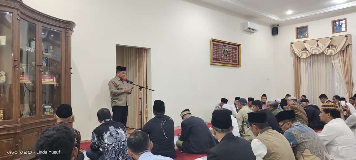 AGAM, CARAPANDANG - Dalam momentum Buka Puasa Bersama (bukber) dengan pengurus ormas dan wartawan di Mess Pemkab Agam, Belakang Balok, Bukittinggi, Selasa (25/3/2025), Bupati Agam, Benni Warlis, Dt. Tan Batuah, menegaskan pentingnya peran semua pihak dalam menyukseskan visi "Baliak ka Surau" atau "Bangkit dari Surau" demi mewujudkan Agam Madani, Adil, dan Sejahtera.
