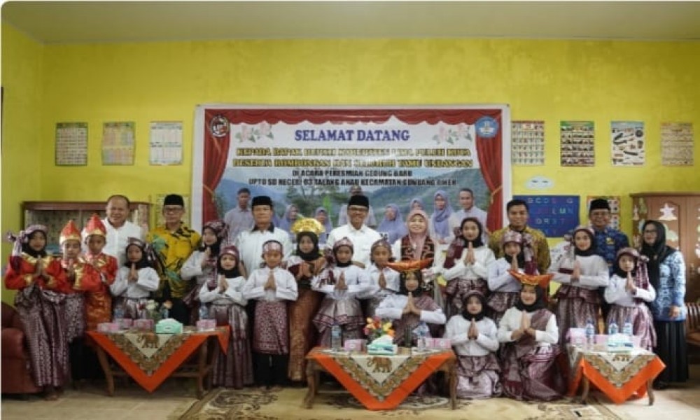 LIMAPULUH KOTA, CARAPANDANG.COM - Peresmian gedung baru UPTD SDN 03 Talang Anau berlangsung meriah meski hujan lebat mengguyur Nagari Talang Anau, Kecamatan Gunuang Omeh sedari Rabu pagi, (17/01/2023).