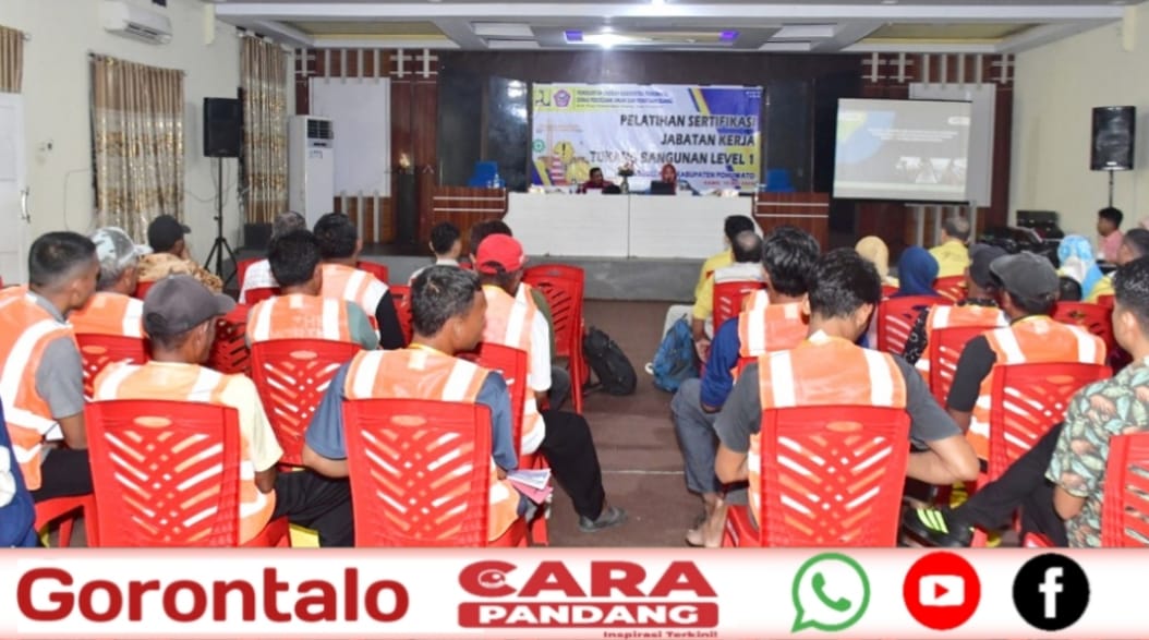 POHUWATO, CARAPANDANG - Dinas Pekerjaan Umum dan Penataan Ruang sebagai salah satu pembina konstruksi bertanggung jawab terhadap keterampilan, handalnya para pekerja konstruksi. Tanpa itu sekali lagi, tidak akan terbangun gedung-gedung, tidak akan terbangun jembatan, dan bangunan-bangunan lain.