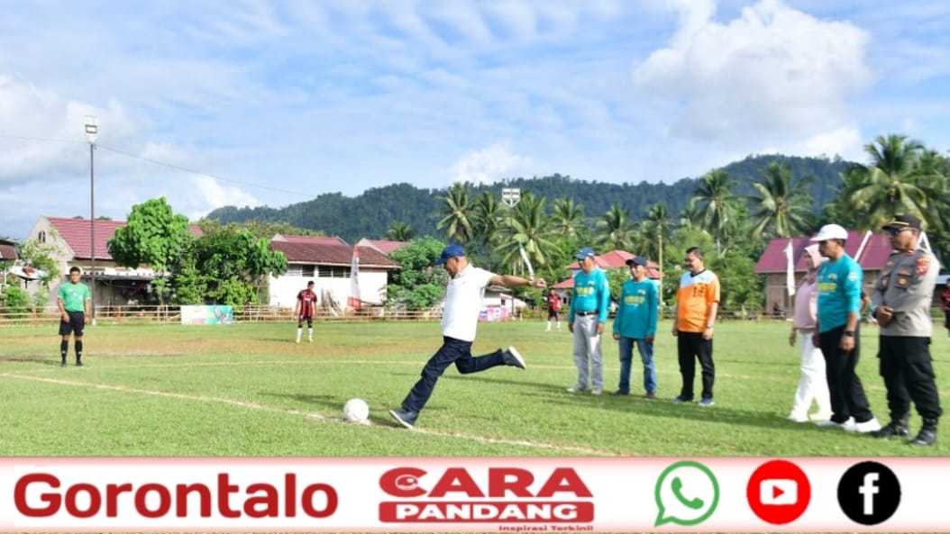 POHUWATO, CARAPANDANG - Turnamen Sepak Bola Transmigrasi Cup yang berlangsung di Lapangan Olah Raga, Desa Kalimas, Kecamatan Taluditi, dibuka Bupati Pohuwato, Saipul A. Mbuinga, Senin,(02/09/2024).