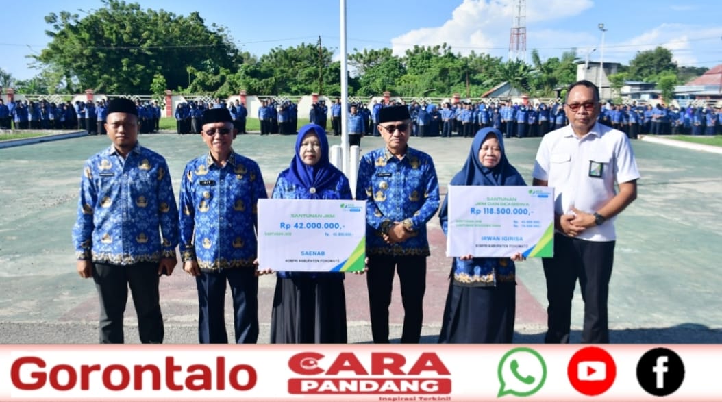 Penyerahan santunan jaminan kematian (JKM) tersebut berlangsung di halaman Kantor Bupati Pohuwato dan turut dihadiri Wakil Bupati Iwan S. Adam, Kepala BPJS Ketenagakerjaan Cabang Pohuwato, serta Ketua Korpri Pohuwato, Usman Bay.
