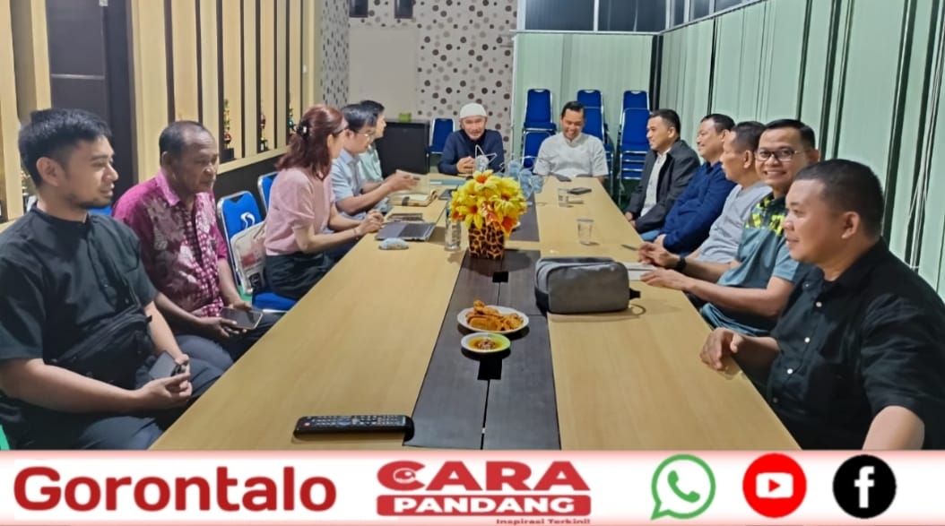 POHUWATO, CARAPANDANG - Bupati Pohuwato, Saipul A. Mbuinga, didampingi Kepala Bapppeda, Irfan Saleh, Kadis Perikanan, Amrin Umar, dan Kadis Perindagkop dan UKM, Ibrahim Kiraman, menerima kunjungan dari Perusahaan Jiangsu Hanpu Machinery Tecnology Co.Ltd. Perusahaan asal China itu berencana menanamkan modalnya untuk pengembangan industri garam dan air mineral. Kegiatan itu berlangsung di Aula Tarsius Bapppeda, pada Kamis (13/03/2025) malam.
