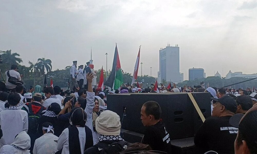 Dia meminta kepada masyarakat untuk menyimpan aspirasi politiknya dalam "Aksi Akbar Aliansi Rakyat Indonesia Bela Palestina" yang diselenggarakan di kawasan Monas tersebut.