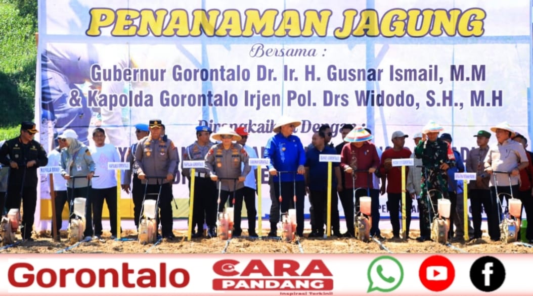 Kegiatan tersebut dihadiri Gubernur Gorontalo Drs.Ir.H.Gusnar Ismail, M.M., Dandim 1315 Kadis Pertanian Provinsi, pimpinan OPD, dan masyarakat setempat. Selain melaksanakan penanaman jagung, Gubernur dan Kapolda juga menyerahkan bantuan benih jagung dan padi secara simbolis untuk ditanam dilahan sepanjang Gorontalo Outer Ring Road (GORR)