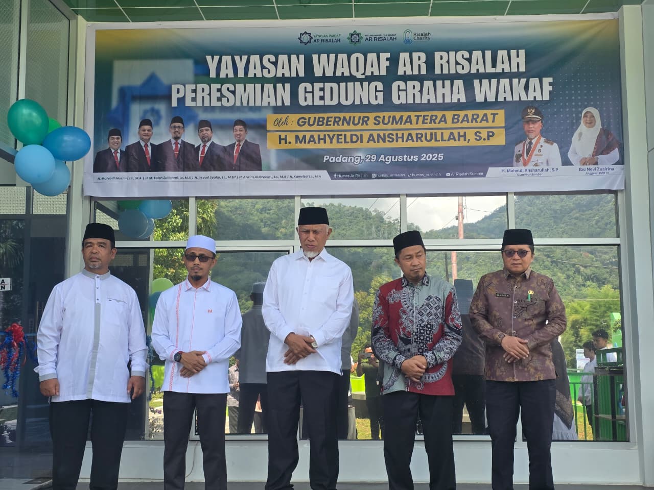 SUMBAR, CARAPANDANG - Gubernur Sumatera Barat (Sumbar), Mahyeldi Ansharullah meresmikan Graha Wakaf AR Risalah yang merupakan gedung wakaf pertama di provinsi ini yang secara khusus hadir untuk mengedukasi masyarakat tentang wakaf. Peresmian berlangsung khidmat di kompleks Yayasan Wakaf AR Risalah, di Padang. Jum'at (29/8/2025).