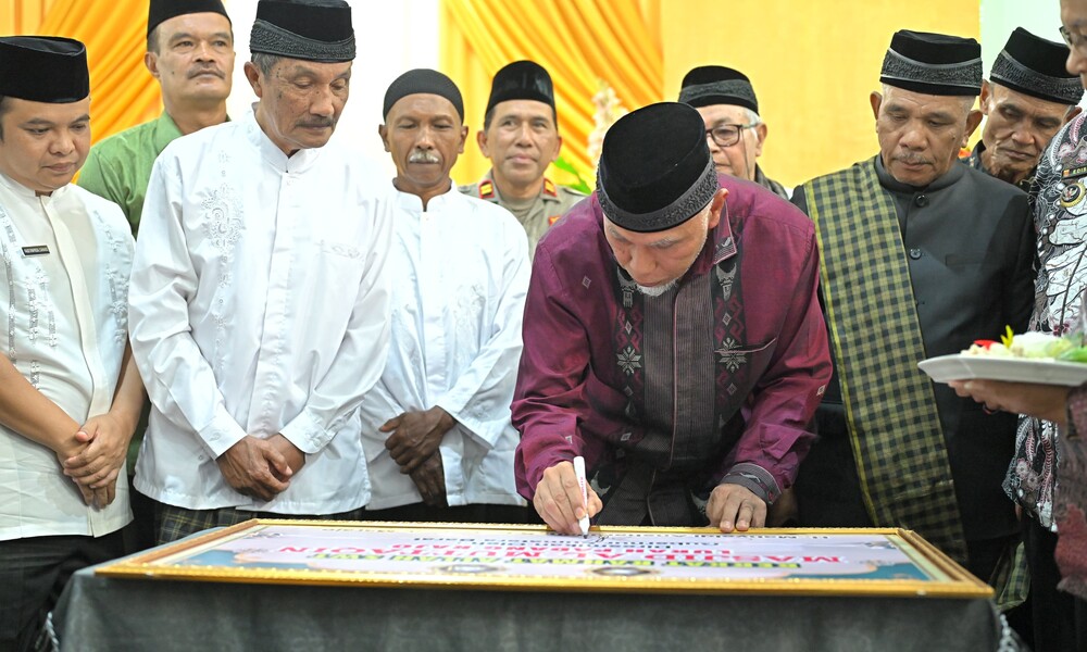 SUMBAR, CARAPANDANG - Gubernur Sumatera Barat (Sumbar), Mahyeldi Ansharullah, meresmikan perubahan status Mushala Al Muttaqin menjadi Masjid Al Muttaqin di Jorong PGRM, Nagari Gadut, Tilatang Kamang, Kabupaten Agam, Jum'at (21/06/2024). Perubahan status tersebut diharapkan semakin memantapkan status masjid sebagai pusat kegiatan dalam bermasyarakat dan membina umat.