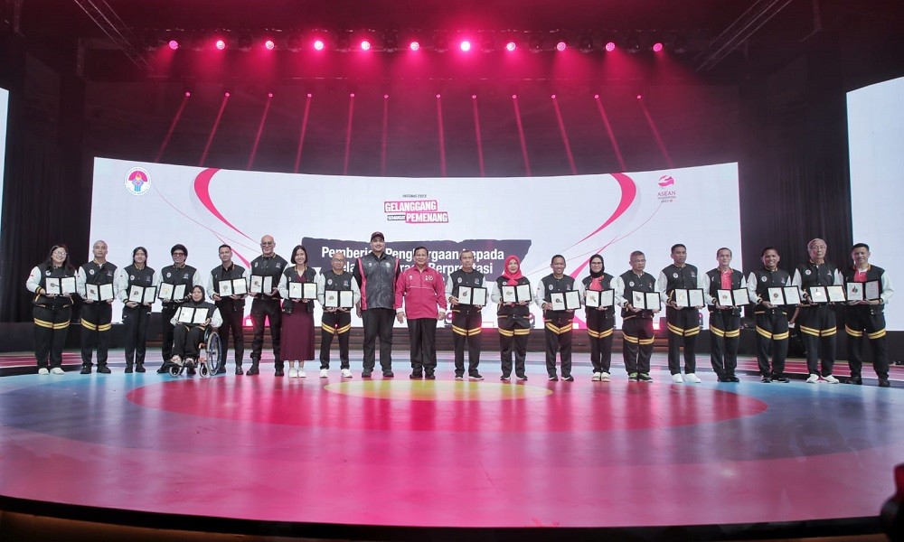 Pemberian penghargaan ini dilakukan saat peringatan Hari Olahraga Nasional (Haornas) 2023 di Jakarta International Velodrome, Jakarta, Sabtu (9/9). Menpora Dito berharap penghargaan ini bisa memacu semangat untuk bisa lebih meningkatkan lagi kepedulian terhadap perkembangan olahraga.