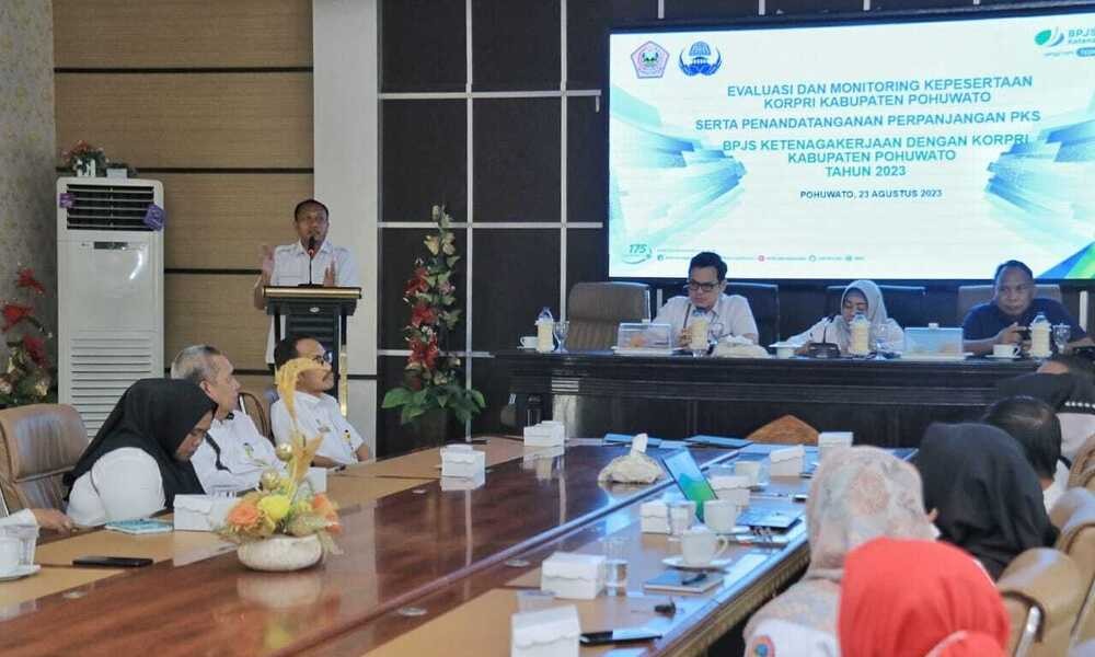 POHUWATO, CARAPANDANG.COM - Usai melakukan penandatanganan perjanjian kerja sama (PKS) dengan Kepala BPJS Ketenagakerjaan Cabang Gorontalo, Arif Budiman, Rabu, (23/8/2023), Ketua Korpri Kabupaten Pohuwato, Usman Hadis Bay menyampaikan bahwa penandatanganan PKS yang dilakukan saat ini adalah perpanjangan dari perjanjian kerja sama sebelumnya yang dilakukan pada bulan Maret 2019.