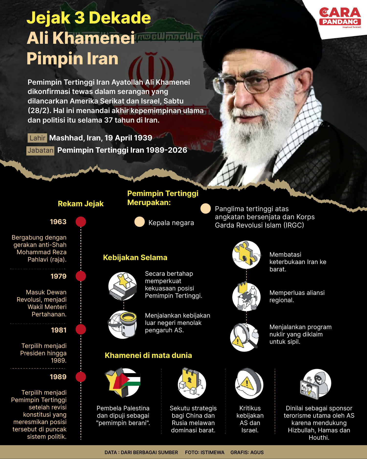 Beranda Infografis Jejak 3 Dekade Ali Khomeini Pimpin Iran Infografis Jejak 3 Dekade Ali Khomeini Pimpin Iran Penulis Marshal - 02 Maret 2026 16:50 0 Jejak 3 Dekade Ali Khomeini Pimpin Iran Tags Berita Sebelumnya Durasi Konflik Timur Tengah Jadi Kunci Utama Pergerakan Pasar Modal Berita Berikutnya Temani Libur Paskah Dengan Rekomendasi Film Berikut LEAVE A REPLY Cancel reply Comment: Please enter your comment! Name:* Please enter your name here Email:* You have entered an incorrect email address! Please enter your email address here Website: Save my name, email, and website in this browser for the next time I comment. Berita Teratas Kisah Amsal, Videografer Yang Didakwa Kasus Korupsi di Karo Sayangi Telingamu: Jagalah Selalu Kesehatan Telinga Kita Dokter: Penyakit Jantung dan Hipertensi Dapat Diturunkan Dalam Keluarga Kisah Ajaib Nabi Sulaiman dan Anak yang Berbakti kepada Orang Tua Russell Terkejut Dengan Kecepatan McLaren di Suzuka Berita Terkait Berita Terkait Wajah Baru PP Tunas: Garda Terdepan Perlindungan Anak Indonesia Zoel Rachman - 31 Maret 2026 09:42 MBG 5 Hari Sepekan Masih Wacana Maliq - 30 Maret 2026 11:49 Presiden Ingin Semua Kendaraan Dikonversi ke Listrik Maliq - 30 Maret 2026 11:48 Kewaijiban PSE Terhadap Pengguna Anak Maliq - 30 Maret 2026 11:15