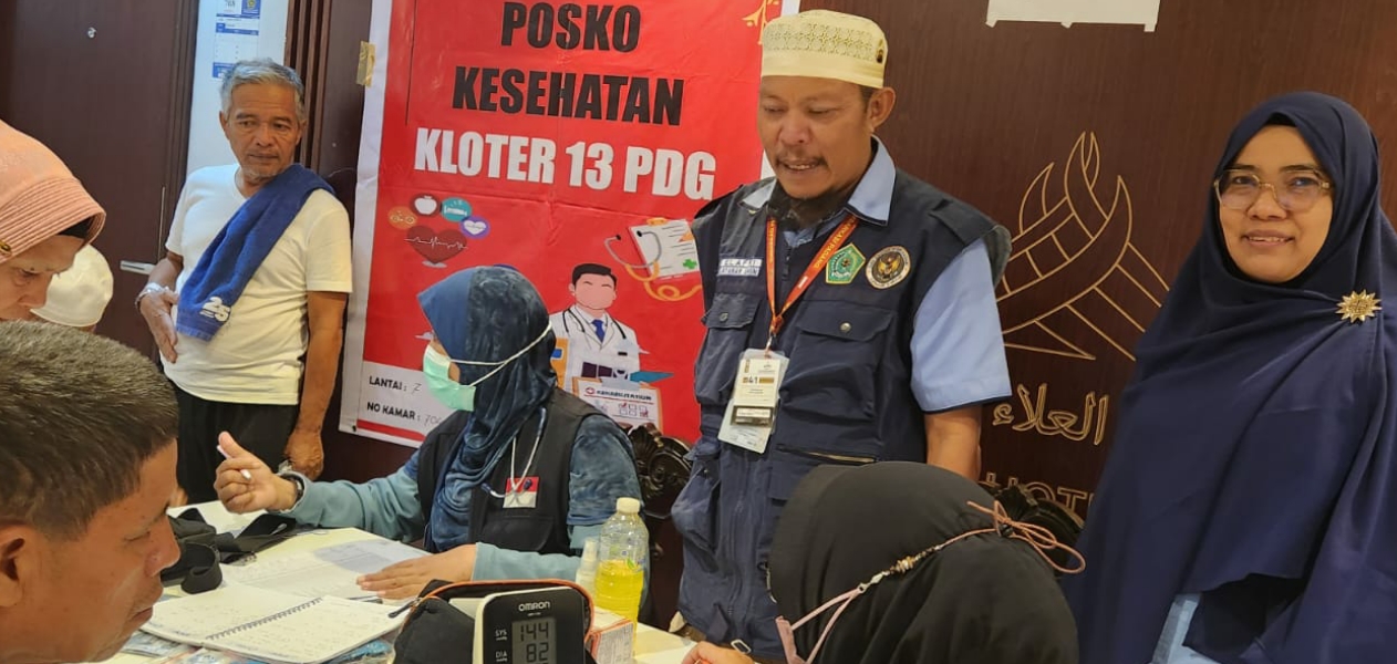Skrining digelar di Posko Kesehatan lantai 7 Hotel Alalaa, Makkah, pada Sabtu, 31 Mei 2025. Sebanyak 162 jemaah tergabung dalam Kloter 13 Padang, sementara 18 orang lainnya merupakan bagian dari Kloter 15 Padang.