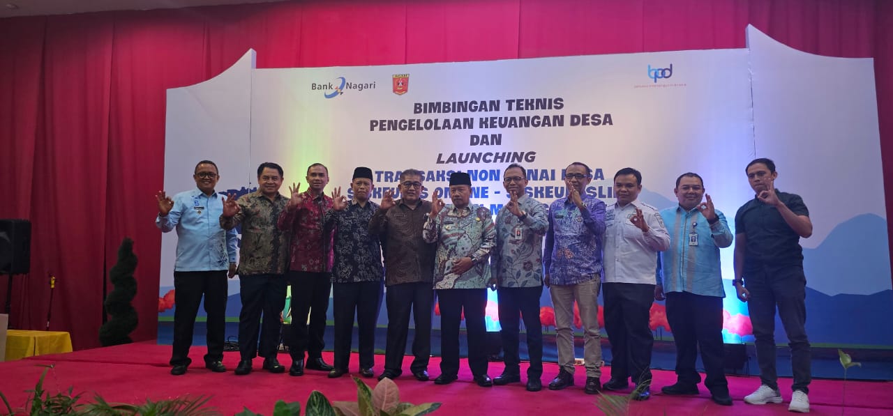 Kegiatan ini ditandai dengan Bimbingan Teknis dan Launching Transaksi Non Tunai Desa melalui Siskeudes Link dan Nagari Cash Management (NCM) Bank Nagari yang berlangsung di Rocky Hotel Padang pada Rabu dan Kamis, 14-15 Agustus 2024.