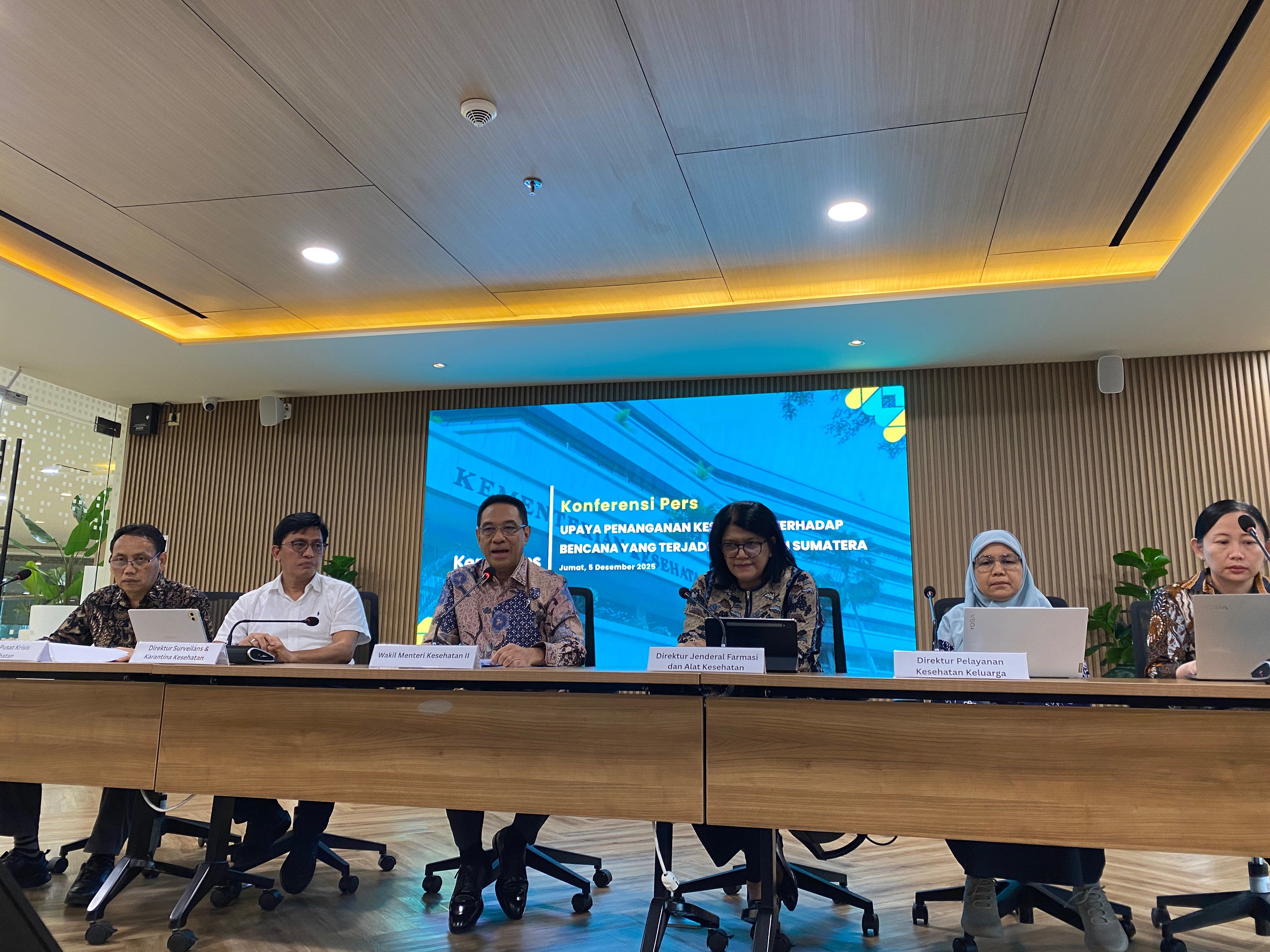 “Tugas yang diberikan kepada kami adalah memastikan bahwa tiap sarana kesehatan bisa beroperasi. Kemudian, mana yang bisa kita bantu, ini termasuk ketersediaan SDM -nya,” kata Wakil Menteri Kesehatan (Wamenkes) Benjamin Paulus saat konferensi pers Upaya Penanganan Kesehatan terhadap Bencana di Wilayah Sumatra, Jumat (5/12/2025).