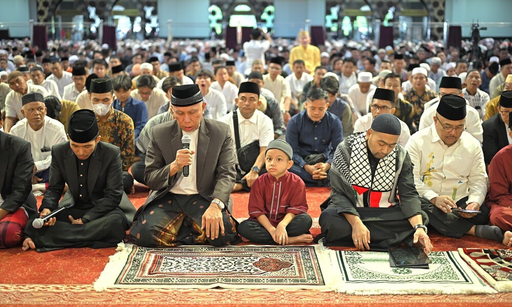 SUMBAR, CARAPANDANG - Ribuan warga mengikuti ibadah berjemaah Shalat Hari Raya Idul Adha 1445 Hijriah di Masjid Raya Sumbar, Senin (17/06/2024). Gubernur Sumbar, Mahyeldi Ansharullah, bertindak selaku khatib dalam ibadah sunat yang juga dihadiri oleh Wagub Sumbar Audy Joinaldy, Forkopimda, dan Pejabat di Lingkup Pemprov Sumbar tersebut.