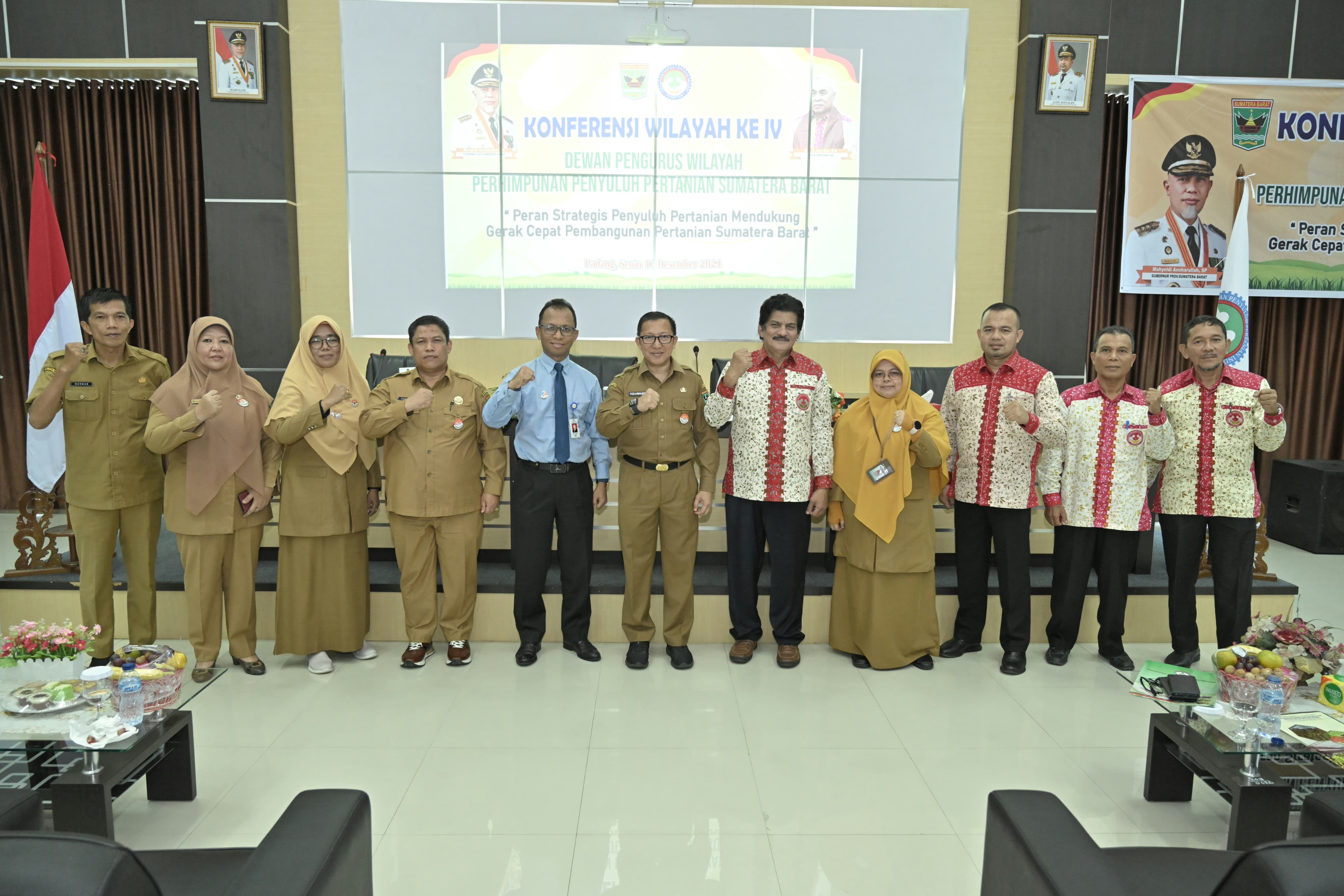 SUMBAR, CARAPANDANG - Terwujudnya swasembada pangan sangat bergantung pada peran dan kualitas Sumber Daya Manusia (SDM) bidang pertanian, terutama sekali peran para penyuluh pertanian. Hal itu disampaikan Pj Sekda Sumbar, Yozarwardi Usama Putra, saat membuka Konferensi Wilayah (Konferwil) IV DPW Perhimpunan Penyuluh Pertanian Sumatera Barat (Perhiptani Sumbar) di Aula Kantor Bapenda Sumbar, Senin (16/12/2024).