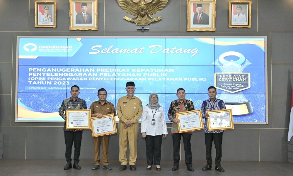 Hal itu disampaikan Gubernur Mahyeldi dalam sambutannya, pada agenda Penganugerahan Peringkat Kepatuhan Penyelenggaraan Pelayanan Publik (Opini Pengawasan Penyelenggara Pelayanan Publik) Tahun 2023, yang digelar oleh Ombudsman RI perwakilan Sumbar, yang berlangsung di Auditorium Istana Gubernur Sumatera Barat (Sumbar), Senin (08/01/2024).