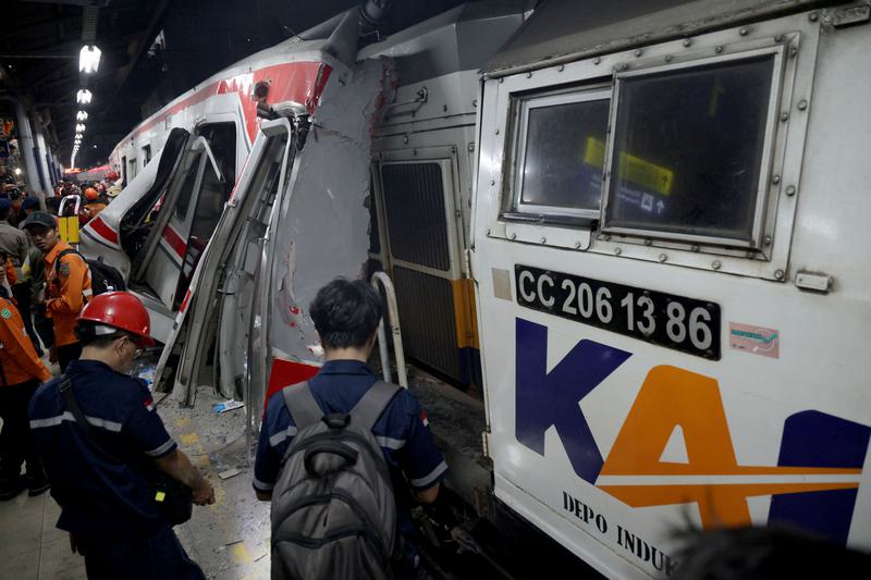 Foto yang diabadikan pada 28 April 2026 ini menunjukkan suasana di lokasi kecelakaan kereta di Bekasi, Provinsi Jawa Barat. (Carapandang/Xinhua/Veri Sanovri)