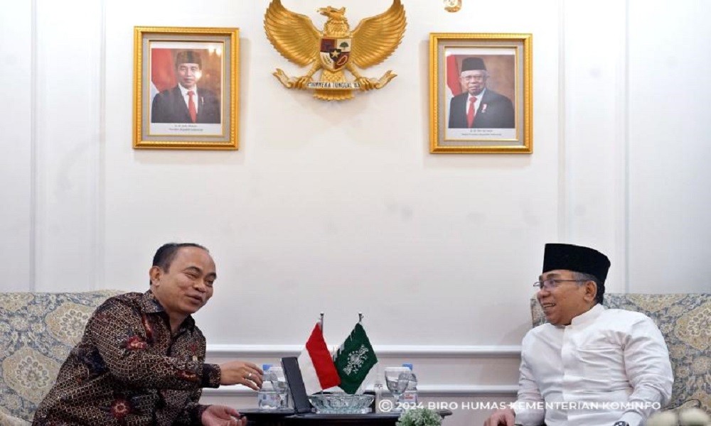 CARAPANDANG - Menteri Komunikasi dan Informatika Budi Arie Setiadi berkunjung ke Kantor Pusat Pengurus Besar Nahdlatul Ulama (PBNU) untuk bertemu dengan Ketua Umum PBNU K.H. Yahya Cholil Staquf.