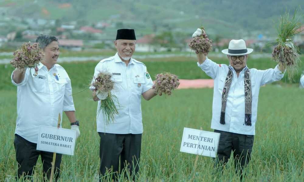 Hal tersebut disampaikan Mentan RI saat Ia bersama Gubernur Sumatera Barat, Mahyeldi Ansharullah dan Bupati Solok, Epyardi Asda meninjau kawasan sentra pengembangan bawang merah nasional di Kabupaten Solok, sekaligus melakukan panen bawang bersama di Nagari/Desa Sungai Nanam, Kecamatan Lembah Gumanti, Kabupaten Solok, Rabu (14/6/2023).