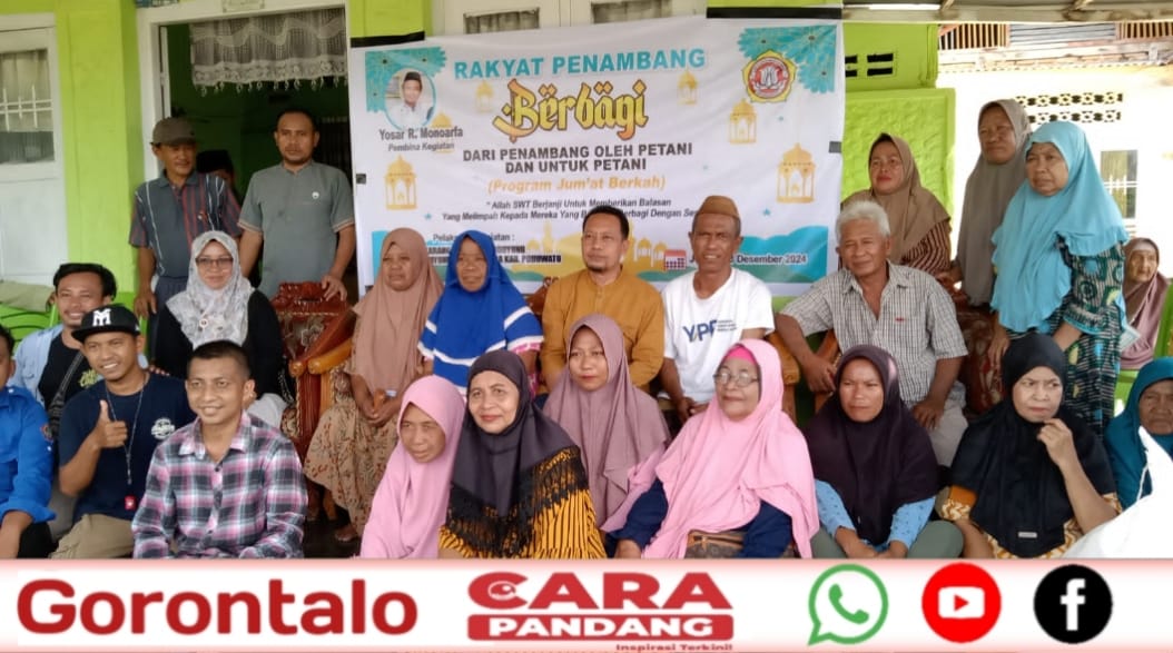 POHUWATO, CARAPANDANG - Para pelaku usaha tambang rakyat di Kecamatan Buntulia, Kabupaten Pohuwato, menunjukkan kepedulian sosial dengan membagikan bantuan kepada masyarakat, di Desa Taluduyunu, Kecamatan Buntulia, Jum'at (13/12/2024).