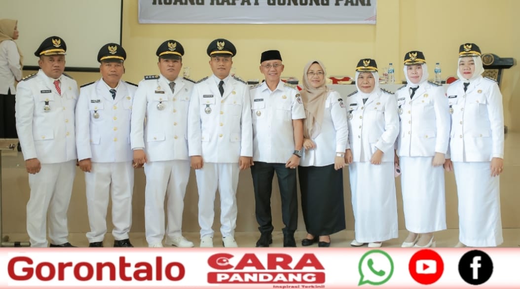 POHUWATO, CARAPANDANG - Suasana khidmat menyelimuti Ruang Rapat Gunung Pani, Kantor Bupati pada Rabu, (08/10/2025), saat Pemerintah Kabupaten Pohuwato menggelar serah terima jabatan (Sertijab) Camat, Kepala Bagian (Kabag) di lingkungan Sekretariat Daerah dan Sekretaris Dinas Pedrpustakaan dan Kearsipan Kabupaten Pohuwato.