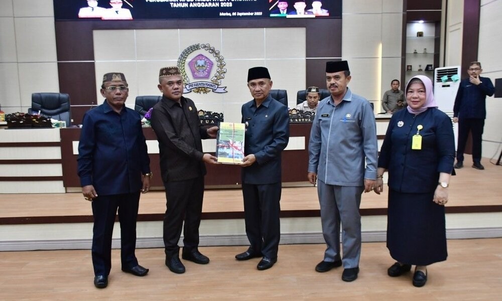 POHUWATO, CARAPANDANG.COM - Pemerintah Daerah Kabupaten Pohuwato telah menyerahkan dokumen Ranperda Perubahan APBD Kabupaten Pohuwato tahun anggaran 2023 yang diserahkan Bupati Pohuwato, Saipul A. Mbuinga dan diterima Ketua DPRD Pohuwato, Nasir Giasi pada Rapat Paripurna ke-47 penyampaian nota pengantar Ranperda Perubahan APBD Kabupaten Pohuwato TA 2023 di ruang sidang DPRD, Rabu, (6/9/2023).