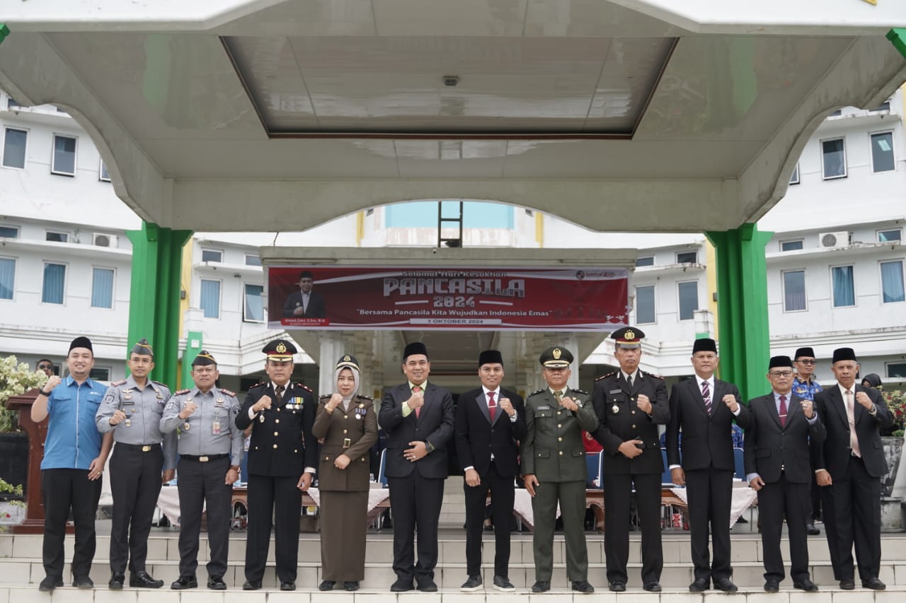 LIMA PULUH KOTA, CARAPANDANG - Pjs. Bupati Lima Puluh Kota Ahmad Zakri, menjadi Inspektur Upacara (Irup) dalam peringatan Hari Kesaktian Pancasila tingkat Kabupaten Lima Puluh Kota yang digelar di halaman Kantor Bupati, Sarilamak pada Selasa (01/10/2024).