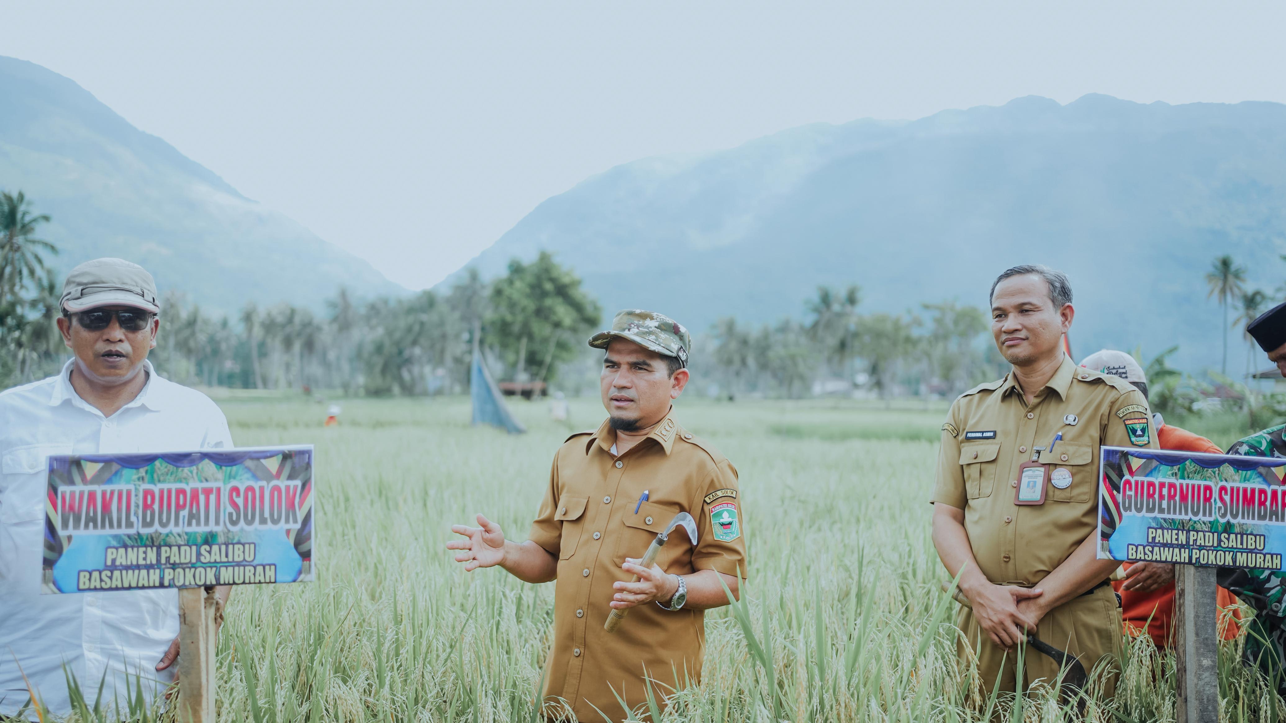 SOLOK, CARAPANDANG - Pemerintah Kabupaten Solok terus mengakselerasi upaya swasembada pangan dengan mengedepankan inovasi pertanian ramah lingkungan. Hal ini ditegaskan dalam kegiatan Temu Ramah dengan Petani Panen Padi Salibu dan Sosialisasi Sawah Pokok Murah yang berlangsung di Nagari Paninggahan, Kecamatan Junjung Sirih, Selasa (6/5/2025).