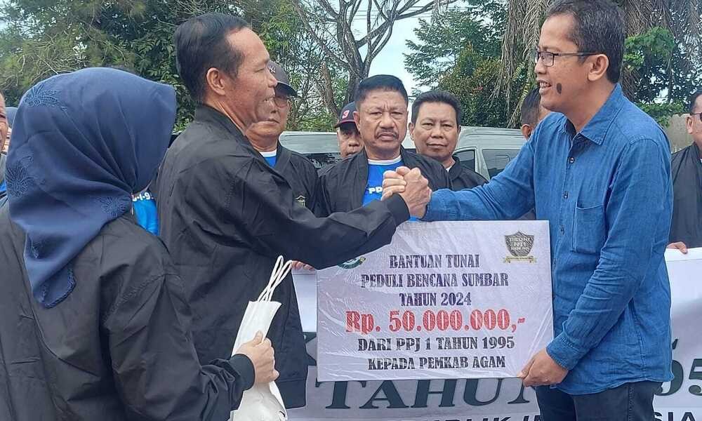 AGAM, CARAPANDANG - Komunitas Jaksa dari angkatan PPJ1 Tahun 1995, bersama dengan Adhyaksa Golf Club (AGC) didampingi rombongan Kejaksaan Tinggi Sumbar, Adhyaksa Dharmakarini Wilayah Sumbar serta Kejaksaan Negeri Agam, menunjukkan kepedulian mereka terhadap para korban bencana banjir lahar dingin di Kabupaten Agam, Sabtu (25/5).