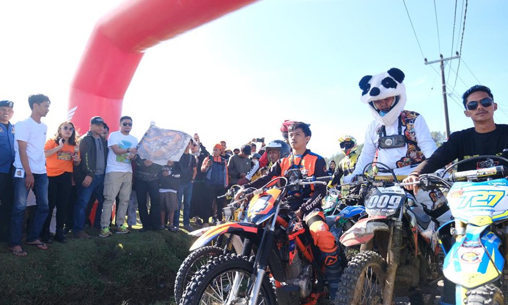 CARAPANDANG - Seribuan Rider atau pengendara motor gunung meramaikan giat Trail Adventure sebagai rangkaian "Beautiful Malino" Kabupaten Gowa, salah satu kalender Kharisma Event Nasional (KEN) Kementerian Pariwisata dan Ekonomi Kreatif (Kemenparekraft) 2023.