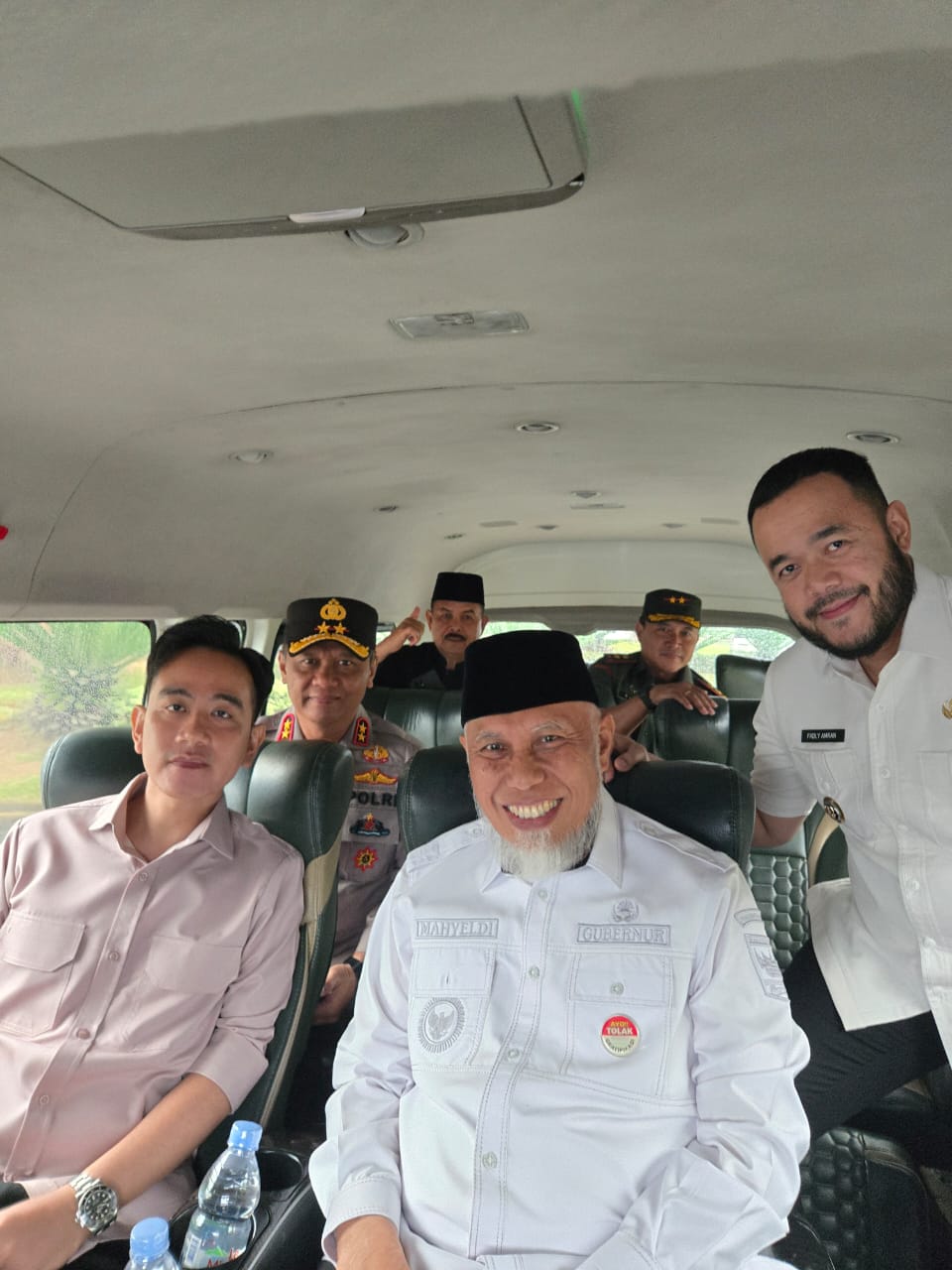 SUMBAR, CARAPANDANG - Gubernur Sumatera Barat (Sumbar), Mahyeldi Ansharullah mendampingi Wakil Presiden Republik Indonesia (Wapres RI), Gibran Rakabuming Raka dalam rangkaian kunjungan kerja sehari penuh di Kota Padang, Rabu (30/7/2025).