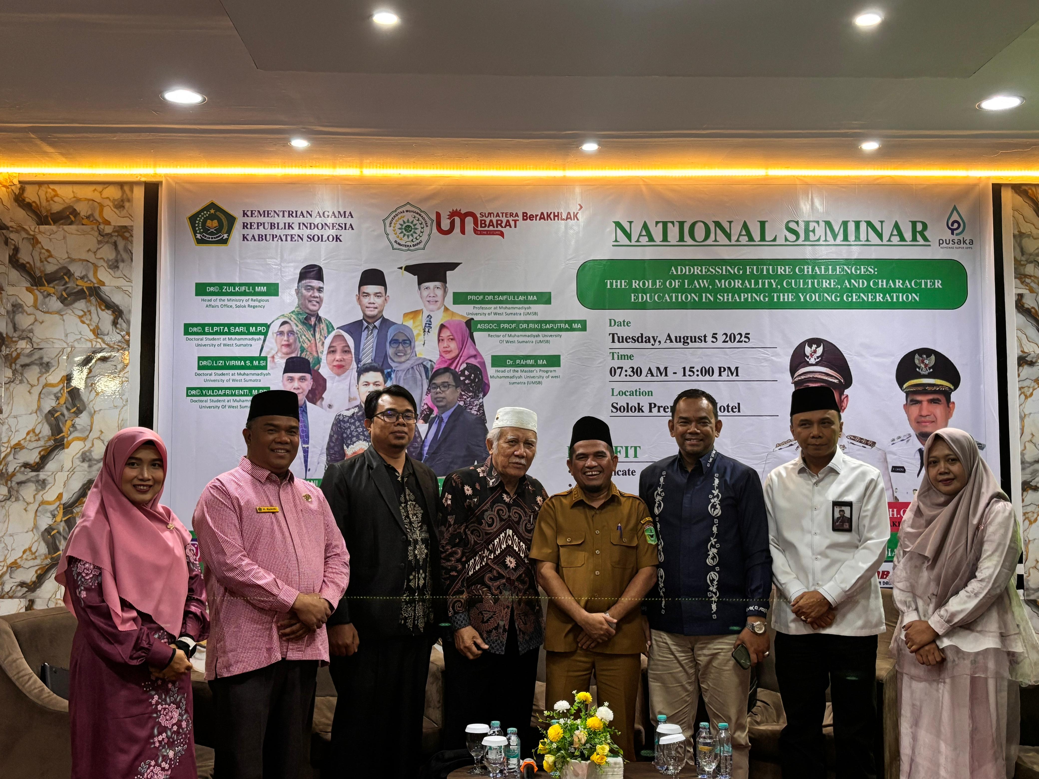 SOLOK, CARAPANDANG - Dalam upaya menjawab tantangan zaman dan dekadensi moral generasi muda, Kantor Kementerian Agama Kabupaten Solok menggelar Seminar Nasional bertajuk "Addressing Future Challenges: The Role of Law, Morality, Culture, and Character Education in Shaping the Young Generation", Selasa (05/08/2025), di Solok Premiere Hotel.