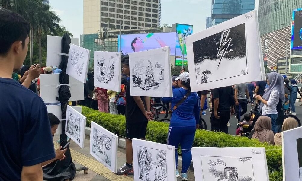 “Ada banyak karyanya, sekitar 100 ada lebih ya. Jadi kami menggaet mereka, pendekatannya adalah dengan karikatur dan beberapa lukisan menjelaskan bagaimana situasi politik,” kata Akta.
