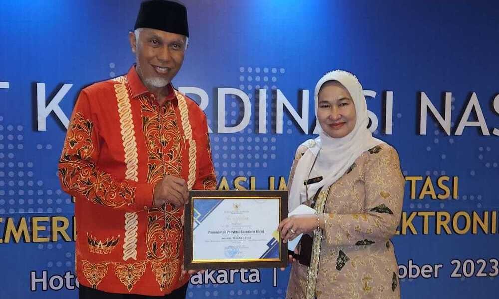 SUMBAR, CARAPANDANG.COM - Gubernur Sumatera Barat Mahyeldi menerima dua penghargaan dari Kementerian Kominfo RI. Penghargaan tersebut diberikan atas andil Pemprov Sumbar mewujudkan pemerintahan berbasis elektronik melalui pemanfaatan layanan jaringan intra pemerintah dan pemanfaatan layanan mail multidomain.