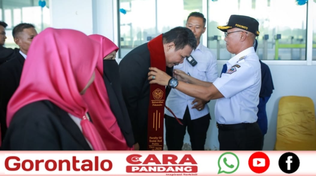 POHUWATO, CARAPANDANG - Wakil Bupati Pohuwato, Iwan S. Adam, menghadiri acara Yudisium Program Sarjana (S1) Angkatan ke-III Fakultas Ilmu Sosial dan Ilmu Politik (FISIP) Program Studi Ilmu Pemerintahan Universitas Pohuwato (UNIPO), yang digelar di Gedung B UNIPO, Rabu, (11/06/2025).