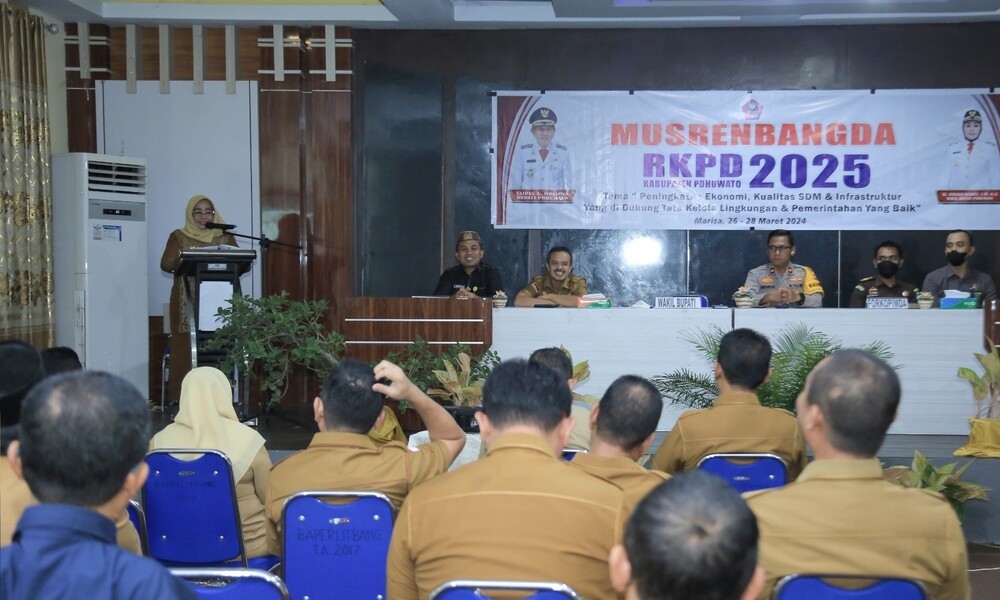POHUWATO, CARAPANDANG.COM - Wakil Bupati Pohuwato, Suharsi Igirisa secara Resmi Buka Musyawarah Perencanaan Pembangunan Daerah (Musrengbangda) dalam rangka penyusunan rencana kerja pemerintah daerah (RKPD) tahun 2025, di aula Dinas PU, Selasa (26/03/2024).