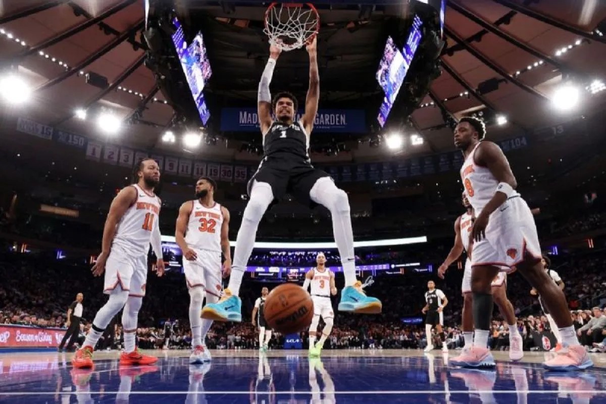 CARAPANDANG.COM - Victor Wembanyama mencetak sejarah dalam debutnya pada laga Hari Natal NBA dengan torehan luar biasa 42 poin dan 18 rebound, meski San Antonio Spurs harus mengakui keunggulan New York Knicks 117-114 di Madison Square Garden, New York, Kamis WIB.