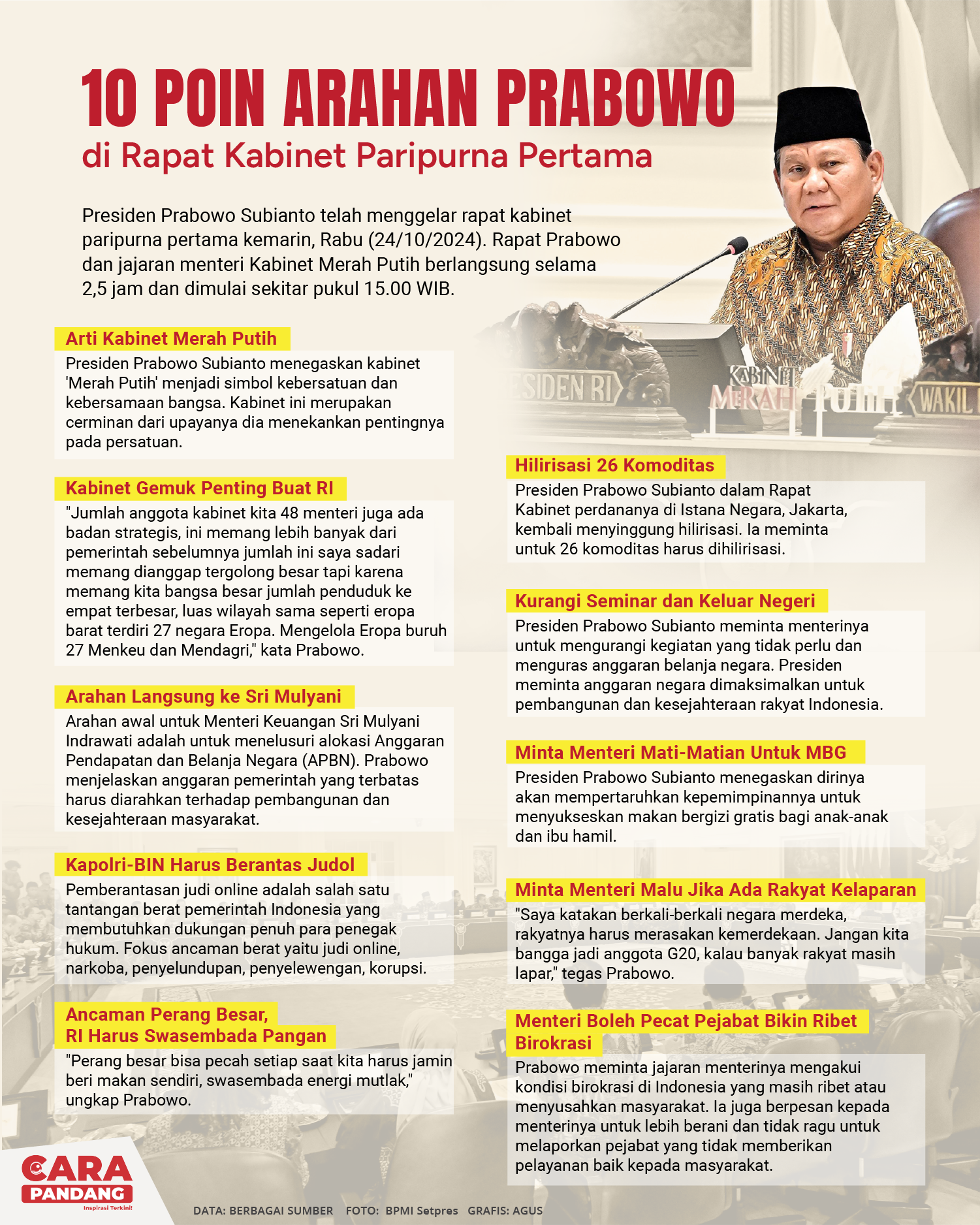 Infografik Sepuluh Poin Penting Arahan Prabowo ke Menteri di Rapat Perdana