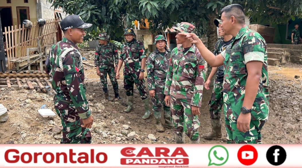 Setibanya di Desa Tuweya sekitar pukul 09.10 Wita, Dandim bersama jajaran Forkopimda Pohuwato langsung melakukan peninjauan kondisi rumah-rumah warga yang rusak akibat terjangan banjir.