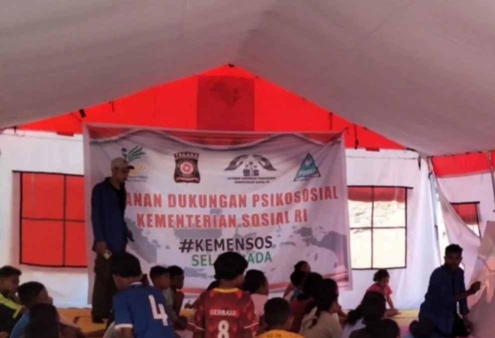 CARAPANDANG.COM - Sedikitnya 18 sekolah darurat didirikan oleh Kementerian Sosial untuk menjamin keberlangsungan pendidikan bagi anak-anak yang menjadi korban erupsi Gunung Lewotobi Laki-Laki, Flores Timur, Nusa Tenggara Timur.
